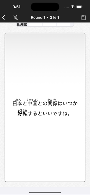 - An audio toggle button (top-left) is available to quickly turn on and off the automatic playback of audio. Great for when you want to listen to music during flashcards.